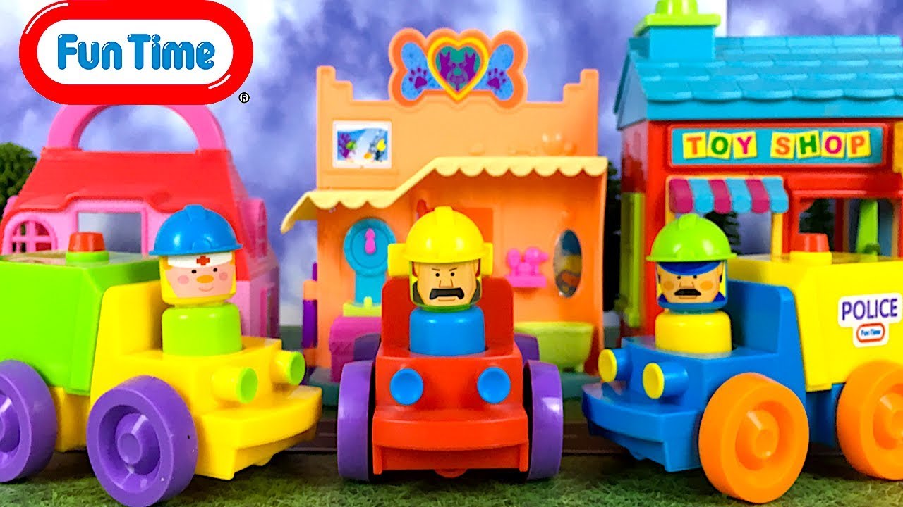 DisneyToysReview the toy channel presents another unboxing video: Fun Time Push and Go 1rst Play Vehicle Set! Today we are unboxing the Fun Time Push and Go 1rst Play Vehicle Set! This fun set comes with a police car, an ambulance and a fire truck. They each have a play figure included and when you roll the vehicles the figurines go up and down! It comes with three different road signs too! I love the bright colors! I love that the fire truck's ladder moves up and down and even turns around! I love seeing the characters bopping along the road!
