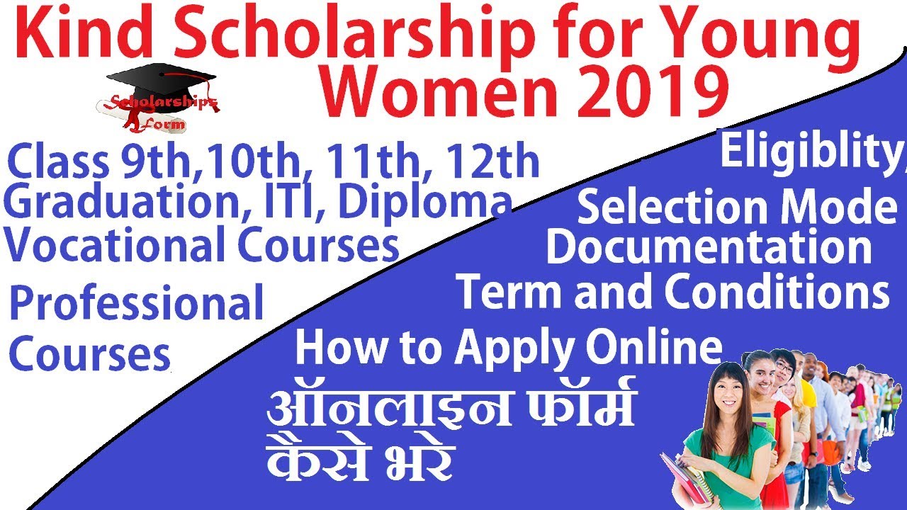 Kind Scholarship for Young Women 2019 Online Application form is available for all the girl who are studying inClass 9 to 12, Graduation, ITI, Polytechnic, Vocational & Professional Courses.