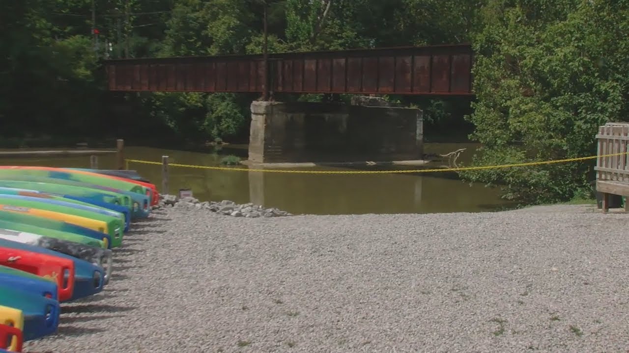 WARREN COUNTY, Ohio (WKRC) - Canoes and kayaks in Loveland are stacked up on a perfect day to be on the Little Miami. Some businesses are closed because of a broken sewer line.