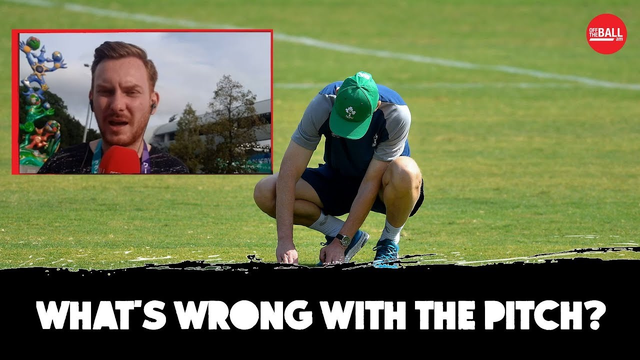 Eoin Sheahan reports from Fukuoka and updates OTB AM on the problems with the pitch for Ireland's Rugby World Cup match against Samoa Read more here: