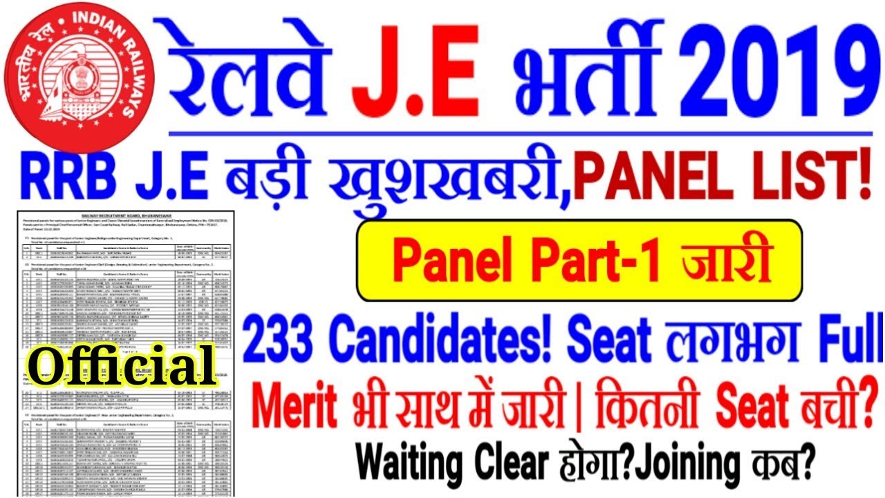 RRB J.E PANEL PART-1 जारी! 233 Candidates Selected, कितनी Seat और बची! Joining Letter! Rrb ntpc BHUWANESHWAR panel part1,rrb BHUWANESHWAR je panel part1,rrb BHUWANESHWAR je panel part1
