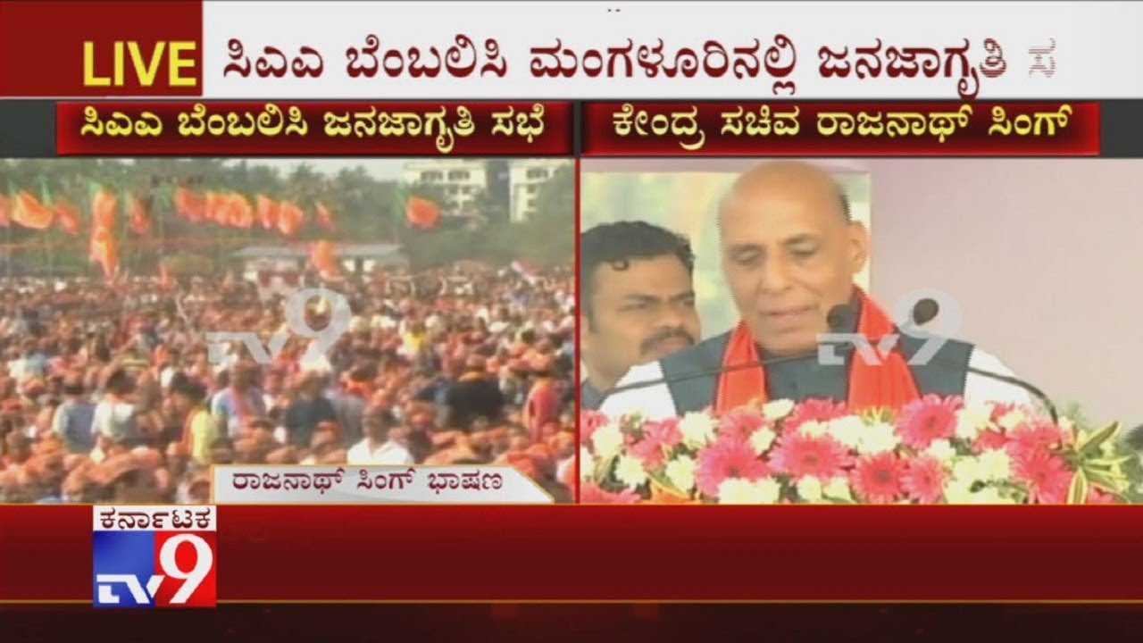 Union Defence Minister Rajnath Singh To Take Part In Massive Pro-CAA Rally Will Be Held In Mangaluru ಸಿಎಎ ಬೆಂಬಲಿಸಿ ಮಂಗಳೂರಿನಲ್ಲಿ ಜನಜಾಗೃತಿ ಸಭೆ.ಸಮಾವೇಶದಲ್ಲಿ ಕೇಂದ್ರ ಸಚಿವ ರಾಜನಾಥ್ ಸಿಂಗ್ ಭಾಷಣ.