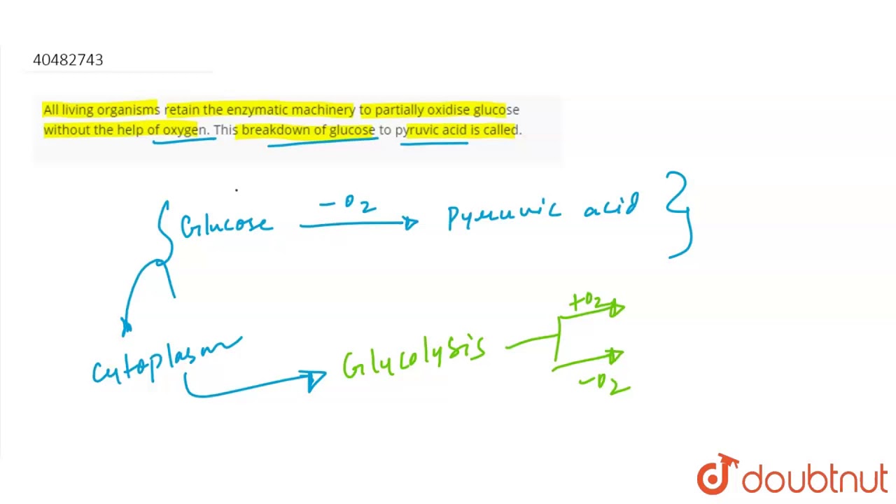 All living organisms retain the enzymatic machinery to partially oxidise glucose without the help of oxygen. This breakdown of glucose to pyruvic acid is called.