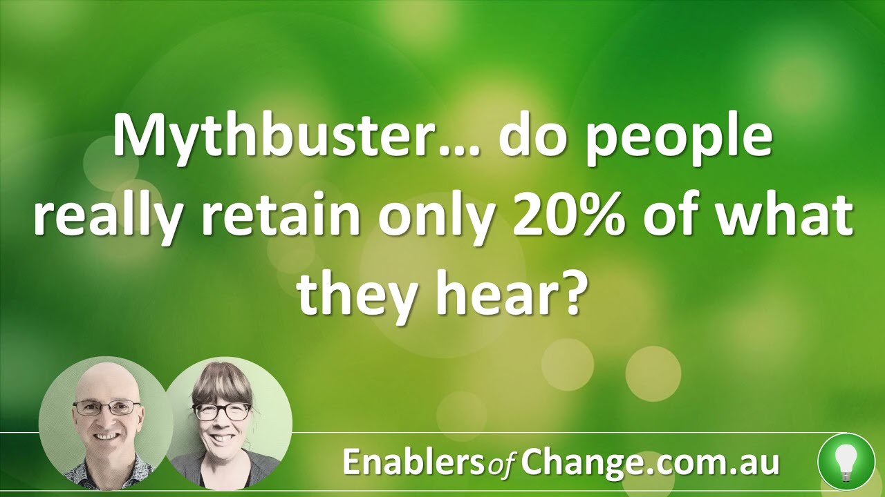 In this short episode we’re doing our second mythbusters session! Let’s not just accept something because it’s been said so many times that most people believe it. We’re going to delve deeper and explore the facts. So, let’s explore the cone of learning and the suggestion that people only retain 20% of what they hear, compared with 90% of what they do!